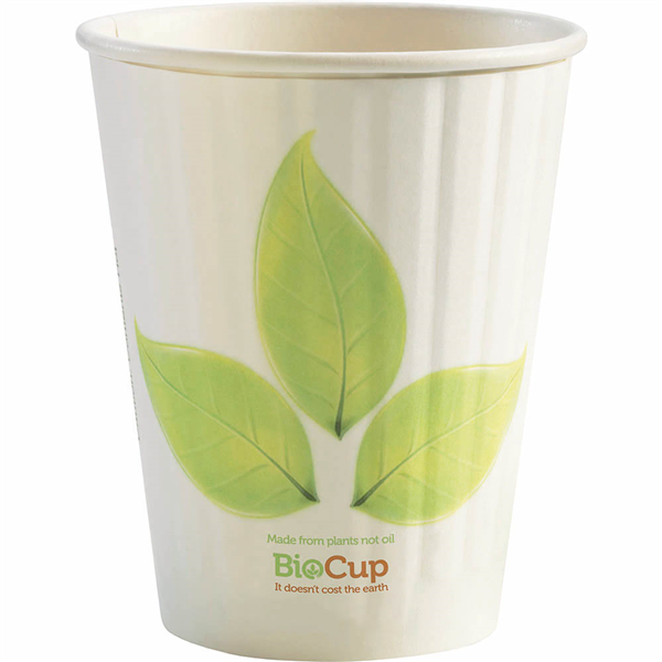 BIOPAK BIOCUP DOUBLE WALL CUP 250ML WHITE LEAF PACK 50