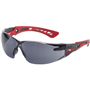 BOLLE SAFETY RUSH PLUS SAFETY GLASSES RED AND BLACK ARMS SMOKE LENS