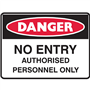BRADY DANGER SIGN NO ENTRY AUTHORISED PERSONNEL ONLY 450 X 300MM POLYPROPYLENE