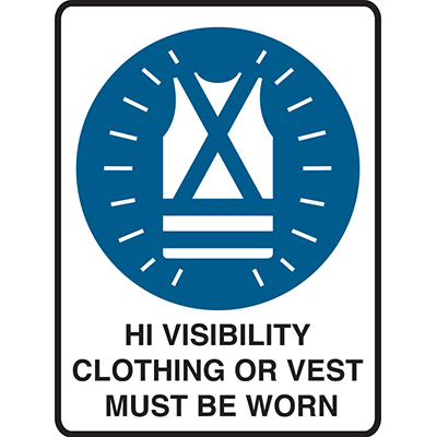 BRADY MANDATORY SIGN HI-VISIBILITY CLOTHING OR VEST MUST BE WORN 450 X 300MM POLYPROPYLENE