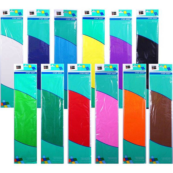 BRENEX CREPE PAPER 2500 X 500MM ASSORTED PACK 12