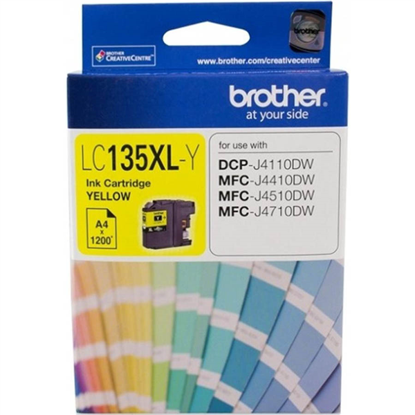 Consistent Quality Printouts - Experience consistently high-quality printouts with no streaking or smudging. Enjoy true-to-life images that can last for decades without fading SPECIFICATIONS Compatible with the following: BROTHER DCP J4110DW, BROTHER MFC J4410DW, BROTHER MFC J4510DW, BROTHER MFC J4710DW, BROTHER MFC J6920DW, BROTHER MFC J6520DW, BROTHER MFC J6720DW 1,200 Pages (estimated page yield provided based on 5% coverage or at ISO 2471 pattern/normal) Colour: Yellow OEM: LC-135XLY UPC: 4977766715461