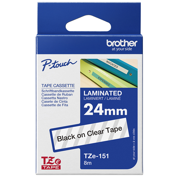 BROTHER TZE-151 LAMINATED LABELLING TAPE 24MM BLACK ON CLEAR