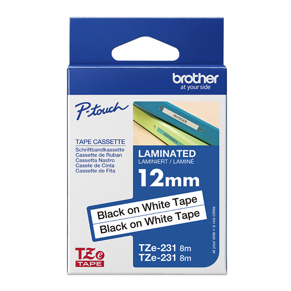 BROTHER TZE-231V2 LAMINATED LABELLING TAPE 12MM BLACK ON WHITE PACK 2