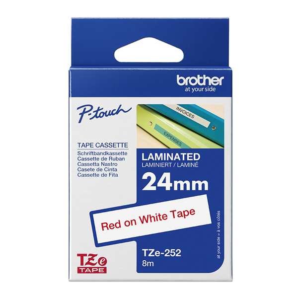 BROTHER TZE-252 LAMINATED LABELLING TAPE 24MM RED ON WHITE