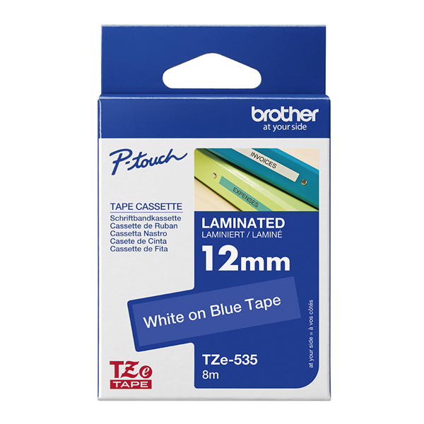 BROTHER TZE-535 LAMINATED LABELLING TAPE 12MM WHITE ON BLUE