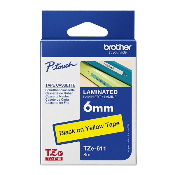 BROTHER TZE-611 LAMINATED LABELLING TAPE 6MM BLACK ON YELLOW