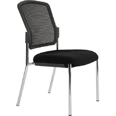 Complements perfectly with popular mesh backed task and executive chairs Generous size seat and back Stackable Breathable mesh back upholstery High density polyurethane moulded foam seat Reflective silver powder coat frame