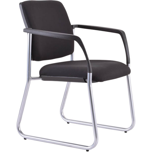BURO LINDIS VISITOR CHAIR SLED BASE UPHOLSTERED BACK ARMS DILLON PU BLACK