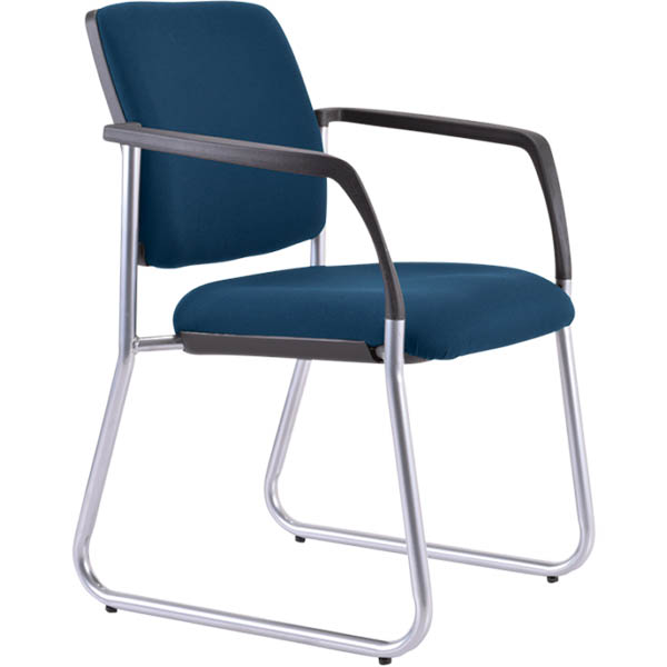 BURO LINDIS VISITOR CHAIR SLED BASE UPHOLSTERED BACK ARMS JETT FABRIC DARK BLUE