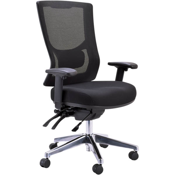 BURO METRO II 24/7 TASK CHAIR HIGH MESH BACK 3-LEVER POLISHED ALUMINIUM BASE ARMS BLACK