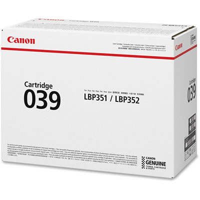 The right consumables give you the sharp results you expect from Canon Canon Inks and toners offer expanded colour reproduction and enhanced density, great for creative production SPECIFICATIONS Compatible with the following: CANON LBP351X, CANON LBP352X 11,000 Pages (estimated page yield provided based on 5% coverage or at ISO 2471 pattern/normal) Colour: Black OEM: CART039 UPC: 4549292031485