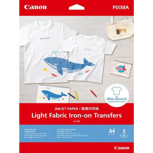CANON LF-101 IRON-ON TRANSFERS PAPER LIGHT FABRIC A4 PACK 5