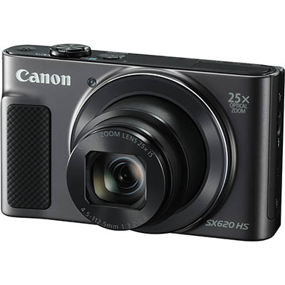 You'll find it easy to get right up close to the action whether on your travels or on your weekends with PowerShot SX620 HS. Its the ideal compact everyday superzoom camera boasting a 25x optical zoom. When a smartphone wont cut it, your trusty PowerShot SX620 HSs 20.2 Megapixel CMOS sensor and DiGC 4+ processor will capture precious memories Shooting landscapes and capturing great group shots are covered with this camera. Its 25x optical zoom and 25mm wide-angle lens gets you much closer Get more creative with innovative features like Hybrid Auto mode. Hybrid Auto records 4 seconds of video before each shot then compiles into one PowerShot SX620 HS is smartphone savvy but stands out from the crowd with its unrivalled features 20.2 megapixel CMOS sensor and DiG!C 4+ processor The ultra-wide-angle lens and 25x optical zoom, 50x ZoomPlus lens will get you closer to the detail The PowerShot SX620 HS gives you the freedom to shoot Full HD movies, so you can watch and relive occasions forever The cameras dynamic IS offers visual stability in every frame, keeping your footage steady, even at high zoom or when shooting handheld
