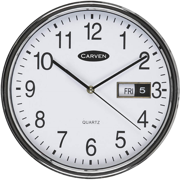CARVEN WALL CLOCK WITH DATE 285MM SILVER FRAME