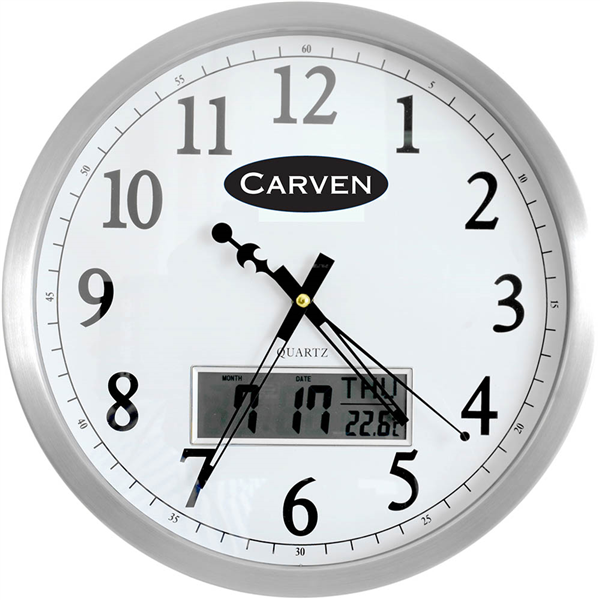 CARVEN WALL CLOCK WITH LED DATE 350MM ALUMINIUM FRAME