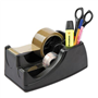 Holds a roll of 50mm packaging tape and 19mm general purpose tape Features a compartment that holds pens, pencils and scissors Perfect for mail room, shipping department and sample room Made from 30% post consumer recycled material