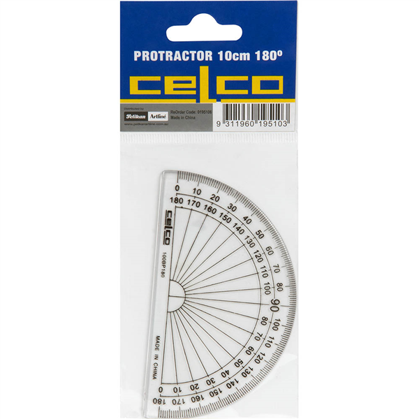 Available in both 180 degrees and 360 degrees, celco protractors feature a variety of measurements for various purposes Semi circle protractor made from strong plastics Opposite graduations Centre indicator