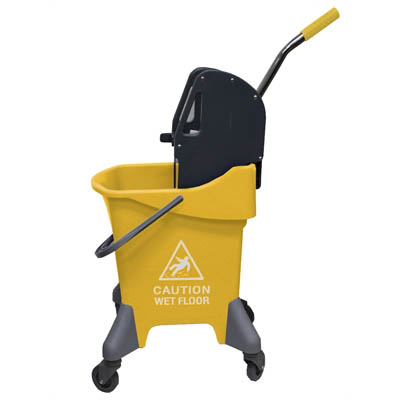 Ergonomic wringer operation with high handle position for thorough wringing of mop Handle to transport easily around the workplace Ease of movement- Non-marking castors wheels move quietly across any surface Ideal for large cleaning requirements in schools, hospitals and government institutions Colour coded to meet industry standards Yellow for Infectious Area Cleaning Hand operated wringer allows maximum pressure Separates dirty water when wringing
