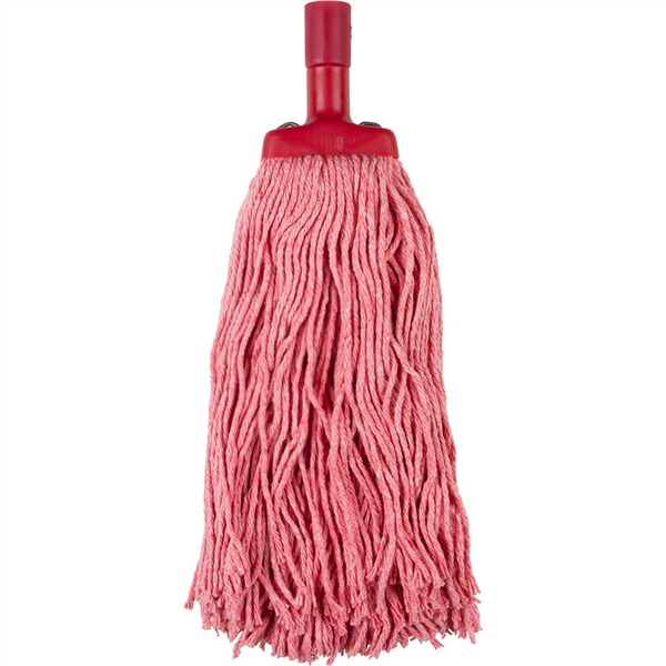 Ideal for commercial use and colour coded to meet industry standards Each mop head has a 25mm thread ready for aluminium handle attachment, and an adaptor if a timber handle is preferred Fibres are stitched prior to clamping to ensure strength and integrity Blended fibres for maximum absorption Additional 25mm thread attachment included Colour coded RED for bathroom cleaning