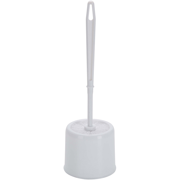The simple white design makes this toilet brush set ideal for both the commercial or home environment White toilet brush features long handle to make cleaning easy Includes round plastic brush holder for discreet, simple storage Keep your bathroom looking great with no hassle