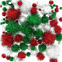 COLORIFIC POM POMS GLITTER CHRISTMAS ASSORTED PACK 138