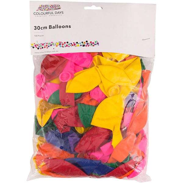COLOURFUL DAYS BALLOONS 300MM ASSORTED PACK 100