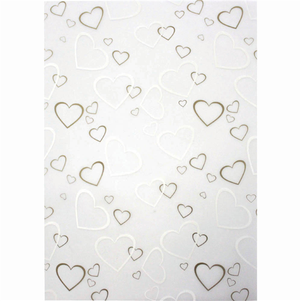 A translucent finish paper, featuring a gold and white tiffany hearts design