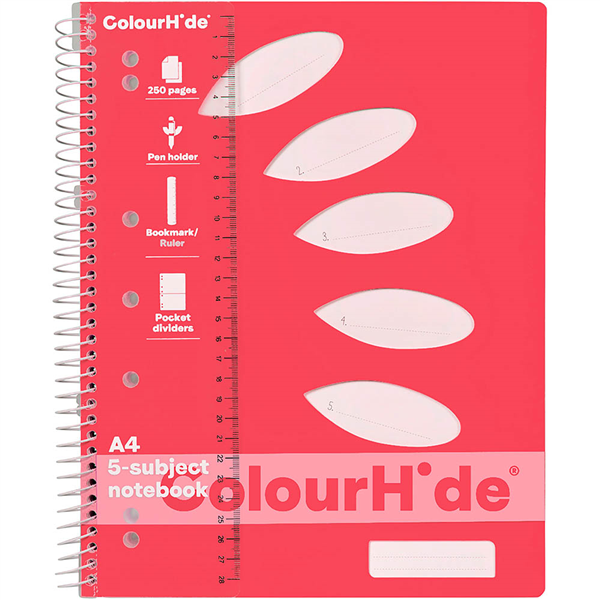 COLOURHIDE 5-SUBJECT NOTEBOOK 250 PAGE A4 WATERMELON