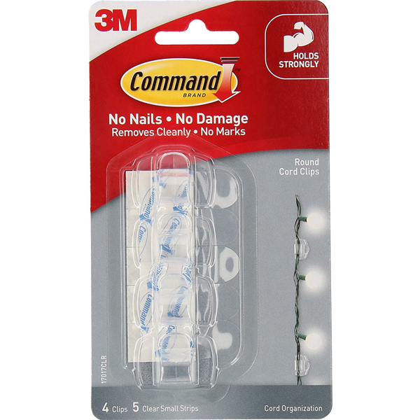 COMMAND ADHESIVE ROUND CORD CLIPS CLEAR PACK 4