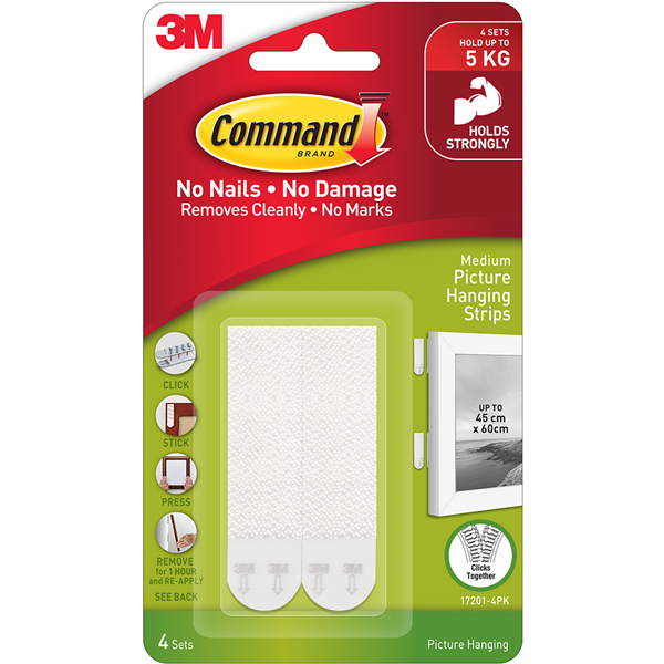 Command picture hanging strips make decorating quick and easy. One click tells you picture hanging strips are locked in and holding tight. Best of all, when you are ready to take down or move your pictures, they come off cleanly