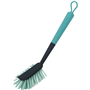 It has thick nylon bristles and comes with a hanging hook Practical plastic dishbrush Thick nylon bristles Blue and black plastic handle Redesigned hanging hook Ideal for all kitchen areas