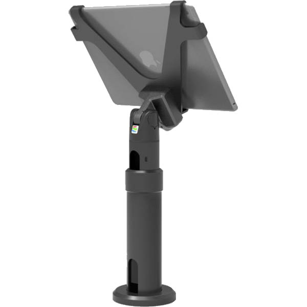 The intuitively designed stand has a rotating and swiveling head and adjustable height pole, making your iPad POS system easy to use and accessible The Legacy Revel Systems pole stand has through wire design for cable management to keep your counter-top clean from clutter Impress your customers with the V-Bracket Stand and keep them (and your employees) happy with how easy it is to use Legacy Revel Systems Pole Stand POS Inspired Design and Style with Adjustable Pole Height Pole Mounted iPad Can Tilt, Flip and Swivel Forward Facing iPad Mount has a Fixed Angle Keyed Lock Mechanism for Quick / Secure Installation and Removal of iPad Through Pole Cable Management Capable of Handling Large Cable Ends Flange Mount Direct to Counter or Select Optional VHB Adhesive or Free Standing Bases Pole Contains Kensington Lock Slot for added Security