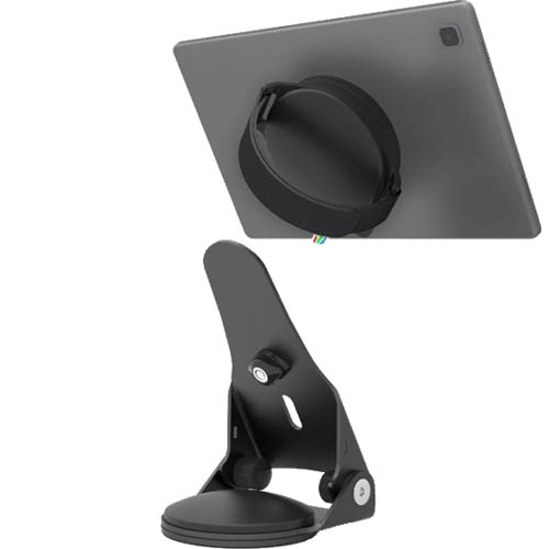 Secure your mobile workforce with this universal tablet hand grip and lockable stand that allows you to 'grab and go' with your iPad and safely display it when stationary The ergonomically designed Hand Grip has an adjustable strap and 360-degree tablet rotation Complete with a secure display docking stand featuring our quick lock design, it provides you a clean way to store your iPad Hand Grip between uses or even as a point of sale or retail kiosk Universal Tablet Security Secure 'Grab and Go' Solution Quick Lock System Tilting Display Stand Full 360 Screen Rotation Wall or Counter-Top Mount Provided optional Swivel Base Compatible with Cable Locks