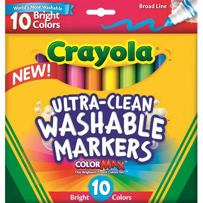 CRAYOLA ULTRA-CLEAN WASHABLE MARKERS BROAD BRIGHT COLORS PACK 10
