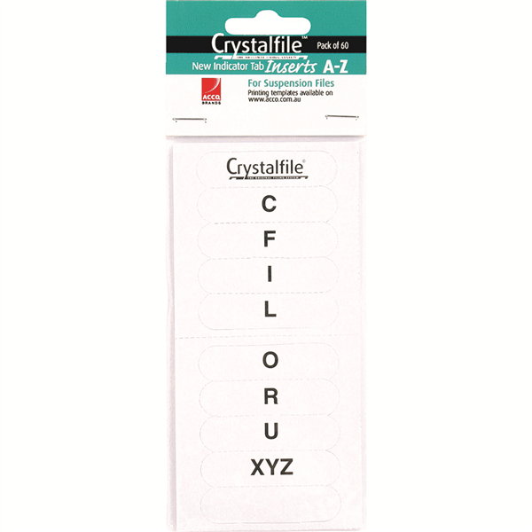 CRYSTALFILE INDICATOR TAB INSERTS A-Z WHITE PACK 60