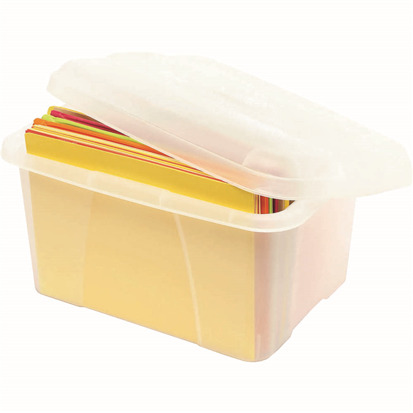Translucent box allows easy viewing of contents Can be stacked for easy storage Protects files from dust, dirt and spillage Please note: Not suitable for suspension files
