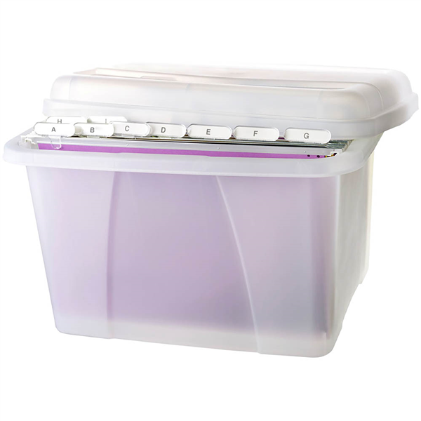 CRYSTALFILE PORTA STORAGE BOX WITH FILES TABS AND INSERTS 32 LITRE CLEAR