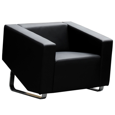Perfect visitor lounge chair for those who value comfort as well as style The Cube range includes single seat, two seat and three seat options High quality leather with chrome loop legs Fully upholstered black leather lounge Quality foam for great comfort and support