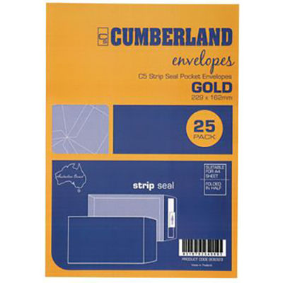 CUMBERLAND C5 ENVELOPES POCKET PLAINFACE STRIP SEAL 85GSM 162 X 229MM GOLD PACK 25
