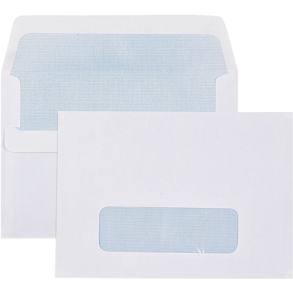 CUMBERLAND C6 ENVELOPES SECRETIVE WALLET WINDOWFACE SELF SEAL 80GSM 114 X 162MM WHITE BOX 500