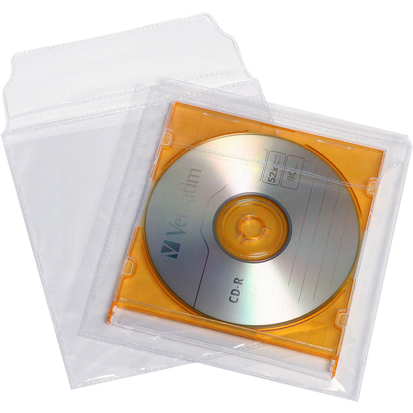 Self adhesive CD / DVD pocket with flap can be easily attached to files, binders and documents