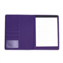 Made from PU with full padded black cover and contrast purple stitching Purple inside cover material Includes business card pocket and credit card pockets Perforated pad includes 50 double sided ruled sheets