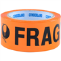 Economical fluoro 'FRAGILE' message tape Sturdy 46 micron tape ensures your packages arrive securely sealed Bright coloured message label ensures your message gets noticed