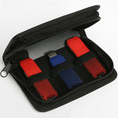 Ideal for holding your USB drives Extra pocket on front with index card Holds a minimum of 6 USB drives, can hold more depending on the size OEM: 1001