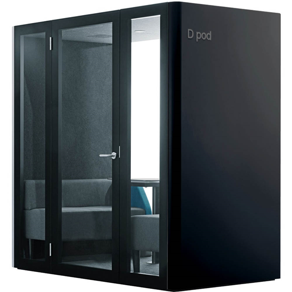 D POD is A 2/4 person pod and is perfect for holding meetings, brainstorming sessions, one-on-one conversations, as well as a place to rest and rejuvenate away from the disturbance of an open space D POD is a comfortable and well ventilated space with great acoustic properties, resulting in increased employee efficiency and productivity Power and connectivity are seamless, with continuous power supply for your gadgets and direct connection to your office network Lighting: 18w12Vdc Recessed LED Strip High Acoustic Rating - Beautifully designed and using carefully selected materials with the best absorption and isolation performance TUV-32dB/NIC