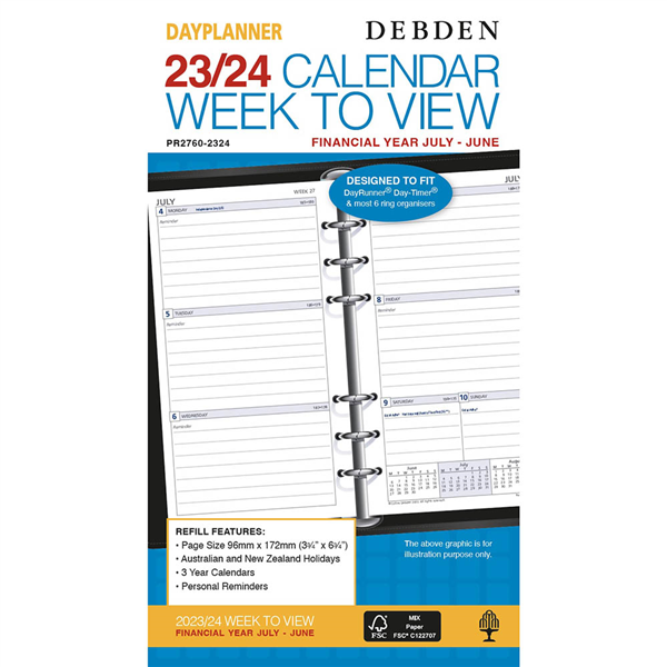 DEBDEN 2022-2023 DAYPLANNER FINANCIAL YEAR DIARY REFILL WEEK TO VIEW 172 X 96MM WHITE