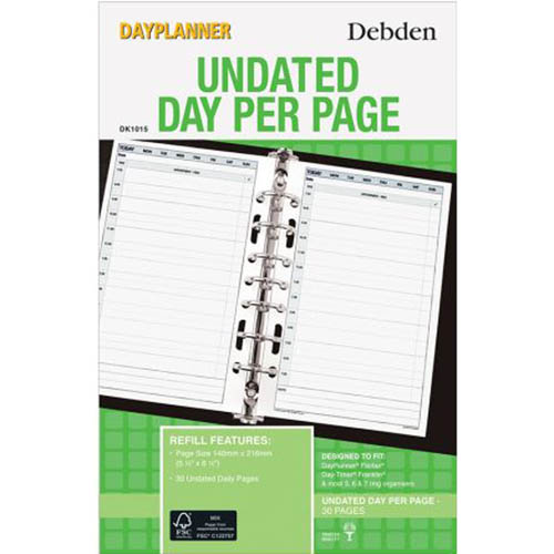 DEBDEN DAYPLANNER DESK EDITION REFILL NON-DATED DAY TO PAGE 216 X 140MM