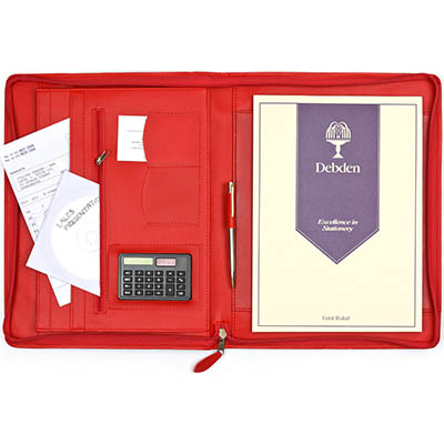 DEBDEN EXECUTIVE PORTFOLIO ZIP CLOSURE PU A4 RED