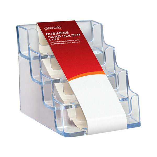 DEFLECTO BUSINESS CARD HOLDER LANDSCAPE 4-TIER CLEAR
